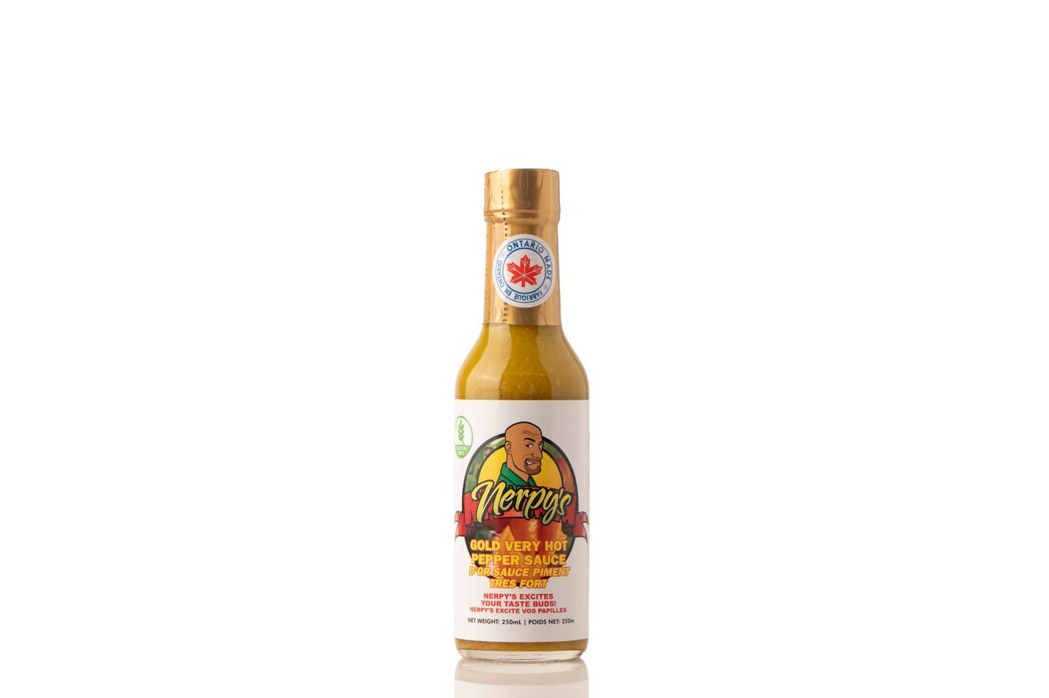 Nerpy’s Gold Very Hot Pepper Sauce is the original creation that launched our line of delicious, spicy sauces. It is our flagship product! Crafted from premium Scotch Bonnet peppers, tropical mango juice, white vinegar, and a special blend of spices, this sauce brings a vibrant Caribbean heat with a touch of sweetness. Nerpy's Gold is ideal for everything from morning eggs to veggie dinners, delivering an exciting balance of smooth sweetness and fiery heat that enhances any dish. Vitamin-rich mango adds a subtle layer, while the Scotch Bonnet kicks in with intense, authentic piquancy. Ooh la la!